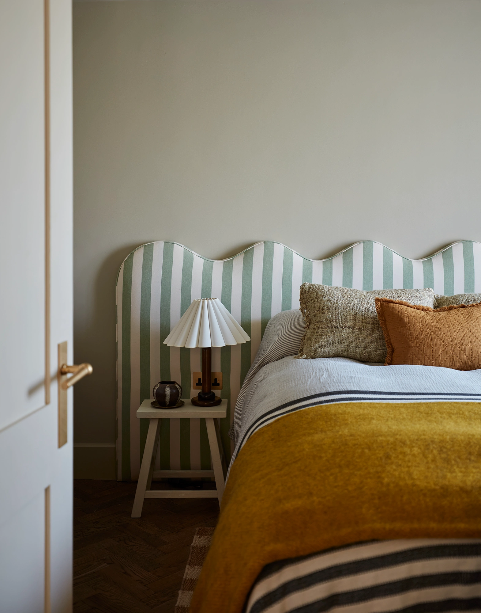Whether at the foot of the bed or in a window corner, a curved chair adds a soft pause to a private space and in my case, a dumping ground for clothes that have another days wear (not even designers are perfect).