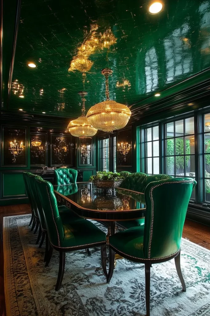 Hollywood glam thrives on shine, drama, and a deliciously self-indulgent, main-character energy in the most fabulous way possible. Lacquered surfaces are practically non-negotiable in achieving this look. Their high-gloss finish reflects light beautifully, especially in moodier, darker rooms, instantly amplifying depth and sophistication. Whether applied to walls, ceilings, floors, or furniture, lacquer has a remarkable ability to elevate even the simplest forms into statement pieces.